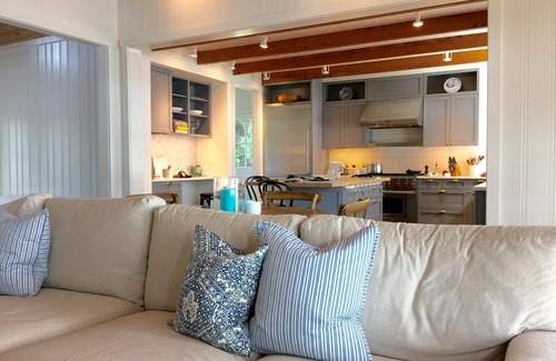 Our newly constructed Scandinavian farmhouse features wide plank oak floors, Sub Zero Fridge, Wolf Gas Stove, Sub Zero Beverage Cooler and Carrera marble countertops. Dining Rooms Table seats 10. This cottage chic style house was built in 2015 and is charming, sophisticated and comfortable.