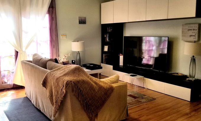 Unwind on the plus sized couch and catch up on your latest shows after a long day work. Or if you are really worn out get a luxurious night sleep on the brand-new comfortable Queen sized adjustable Tempur-Pedic beds.