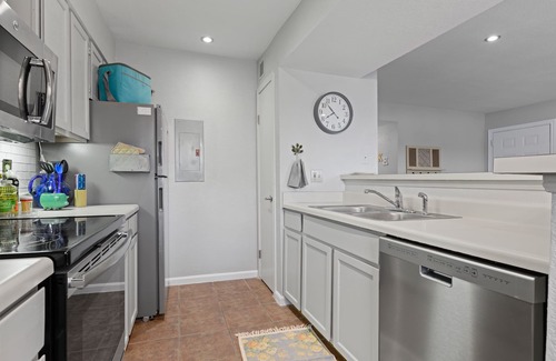 This condo comes equipped with all the necessities for a great getaway. Bath and bed linens are provided (extra sheets in linen closet in guest bath) including beach towels, along with a starter supply of toilet paper, tissue, detergent, hand soap, shampoo, conditioner, body wash and soap. In the kitchen, you’ll find a starter supply of coffee, tea and sweeteners; hand and dish soap, and paper towels. The condo includes cable TV and complimentary Wi-Fi.