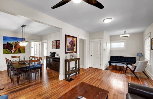 Private parking for up to seven vehicles ensures convenience and peace of mind during your stay. Explore the charming Germantown neighborhood, known for its vibrant atmosphere, trendy bars, micro-breweries, delectable restaurants, and unique shops. Discover nearby attractions like Churchill Downs and the Urban Bourbon Trail, immersing yourself in the rich cultural heritage of Louisville.