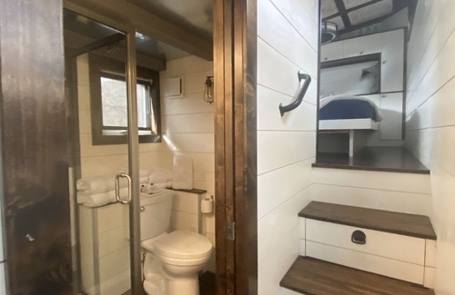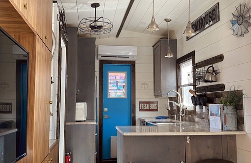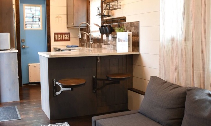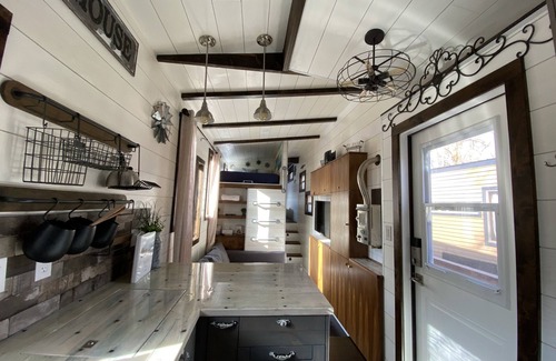 The Big Easy is a custom luxury tiny house was featured on the cover of Tiny Living Magazine and won the "Best in Show" award at the 2017 Colorado Tiny House Festival! It features 3 sleeping areas: a master bedroom with a closing door, a loft, and a fold-down sofa on the main level. Smart tv on the main level. The kitchen includes tons of cabinet space, a full fridge, a double burner induction cooktop, and a microwave. Bathroom includes a shower, flushing toilet, and sink.