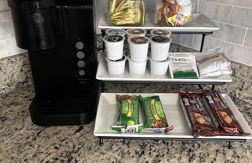 Fully Equipped Kitchen: Whip up your favorite meals in our fully equipped kitchen, complete with modern appliances and all the cookware you need. Some of the included items are plates (toddler plates/cups too), cups, utensils, cooking utensils, pots/pans/, blender, rice cooker, hand mixer, food storage…anything you will need to cook/grill is there!