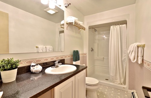 The Birch Ridge “shared” common areas were renovated in 2023 and feature an amazing A-frame Great Room with full bar area, 12' shuffleboard table, coffee station to get your caffeine fix, microwave, water cooler, beautiful gas fireplace, streaming TV, receiver with surround speakers, high-top tables, comfy sofas, swivel chairs and bar stools. The entryway is the perfect place to take off your boots and hang your coats, while our outside ski storage provides a convenient spot to store your gear. The sitting area provides another small gathering place with streaming TV and games, plus a half bathroom. An elevator provides accessible access to the first-floor rooms should you need it (key required). You can also get all the ice you need from our commercial ice machine.