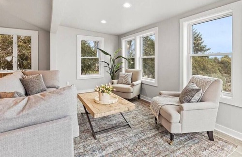 Gaze out onto Eagle Lake from this fully renovated, breathtaking, comfy cottage retreat. The views from the balcony are best enjoyed with a glass of wine in hand. Everyone can gather around the sizeable kitchen/living room area or the campfire out back as you enjoy your s'mores!