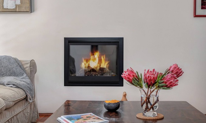 Relax in the lounge room with comfortable sofa and a cosy fireplace for romantic winter evenings.
