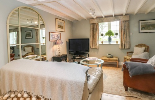 Amenities: Gas central heating with electric fire. Electric double oven and induction hob, microwave, dishwasher, fridge, freezer, washing machine. TV with Sky and DVD Player, WiFi. Fuel and power inc. in rent. Bed linen and towels inc. in rent. Highchair and travel cot available. Ample Off-road parking. Gravelled area with seating, barbecue and chimnea, with access to all of owner's grounds, Bike storage. Stabling for one horse on request. Sorry, no pets and no smoking. Shop within 3.9 miles, pub within 1.7 miles. Note: The owner lives on the grounds in the house opposite this property. Note: This property rests on a working stud farm. Note: Taxi rides from owner from pub on request. Note: There is shooting and horse hunt locally. Note:The property entrance is down stone steps which may not be suitable for people with mobility issues.