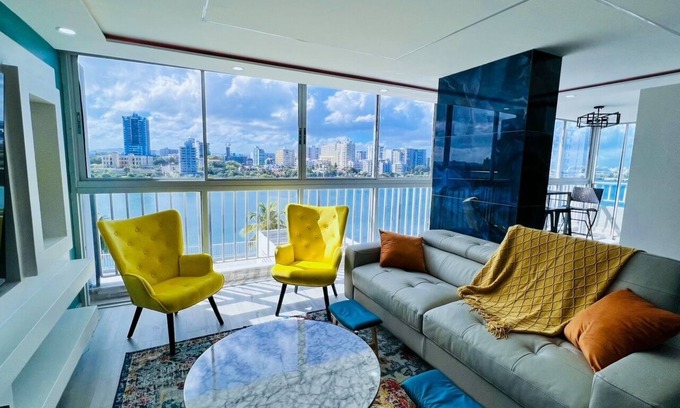 The Lagoon Pad -FULLY REMODELED in January 2023. A Modern luxurious, beach front and full lagoon view apartment with ocean views from the balcony and bedrooms. Enjoy the sunrise/sunsets overlooking the Condado Lagoon. The 30 feet long water view will leave you breathless. Enjoy the 70"tv, have a glass of wine or cup of coffee made from the Keurig coffee machine, and feel your stress melt away. We have a X Box and for the ladies a lighted makeup table. Luxury, fun, and wonderful views await.