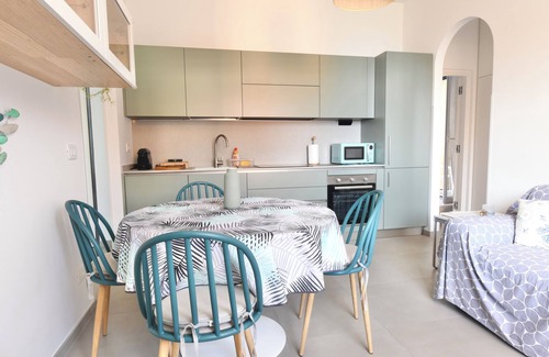 Relax in this corner of quiet and elegance just 150 meters from the beaches. Closed to the Europa seafront, the apartment is structured as follows: living room with complete kitchen (with dishwasher, microwave and induction) and two bedrooms: one double bedroom with balcony and the other with single beds and walk-in closet, finally a bathroom with window and spacious shower. It is equipped with air conditioning and the possibility of a camping cot and high chair for children.