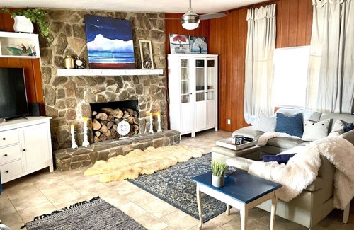 Top floor has large king bedroom, huge open floor plan sunroom, (2 futons & air mattress) office area & a large 6 seat dining table, upgraded kitchen w/bar seating. Living room, bathroom w/shower.