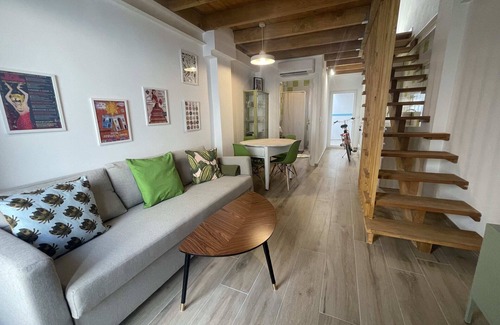 Experience the all-new El Cabanyal in our modern gem, finished in Summer 2023. This 100 m2 property, distributed over two floors, exudes comfort and quality. Upstairs, a dreamy 160x200 cm bed awaits in the four-star hotel-like bedroom. Downstairs, discover a well-equipped kitchen, washer, lightning-fast 600 Mbps dedicated internet, Smart TV, and a dedicated workspace. Relax on the back patio or balcony. Plus, on the ground floor, a sofa bed transforms into a comfy 135x200 cm bed. Enjoy the convenience of a private entrance and free street parking. Just two blocks (600 meters) from the beach and the Marina, immerse in the future of El Cabanyal at our stylish abode.
