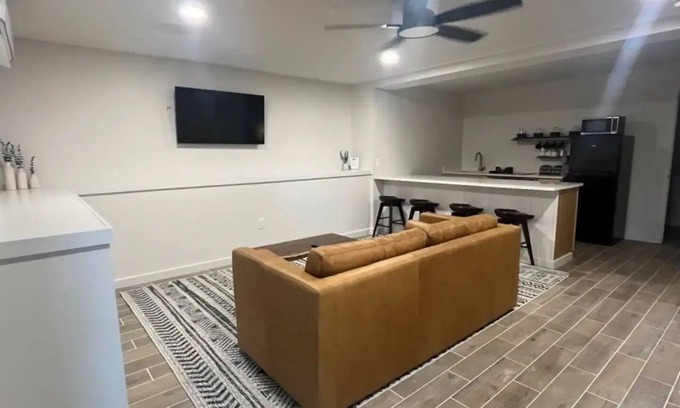 Welcome to the Brewer’s Bungalow, a spacious and inviting ground-floor suite designed with comfort and convenience in mind. This thoughtfully laid-out bungalow features two cozy bedrooms, each furnished with a luxurious king bed, making it an ideal choice for families or friends traveling together.