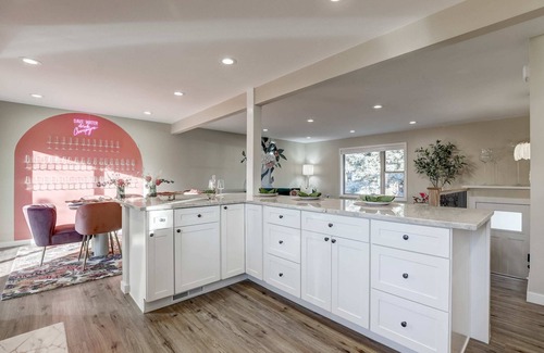 The Bubbly Bungalow is a beautiful stay located in the Town of Arvada. We welcome you to invite loved ones to get together to enjoy the spacious, colorful home, close to all that Denver Metro has to offer. The kitchen is fully stocked, there is more than enough room for everyone, brand new appliances. There are multiple rooms to gather and entertain or relax in. The door outside leads you to a peaceful fenced-in backyard with a grill, bubbly fire pit, beautiful lounge seating and a tree swing. Fun, privacy, comfort, and space are what you will find here.