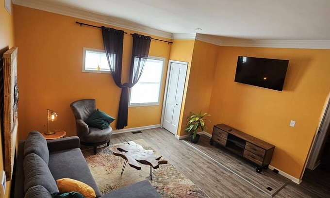 Just across the rails to downtown Holly. Walkable distance to most restaurants, shopping, and festivities. This cozy space offers all essentials as well as a beautiful shared patio just steps away from the Historic Holly Hotel. All furnishings and décor are locally sourced as well as discounts and promotions only available to our guests! Walk in to a rich, warm space that is unlike any other. You will feel right at home with all essentials at your fingertips.