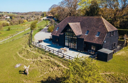 The Canterbury Barn: sleeps 20, within 7 bedrooms, 1 sofa-bed, 2 family bathrooms plus 1 shower-room, two floor living, open plan reception area with panoramic country views, large south facing terrace.