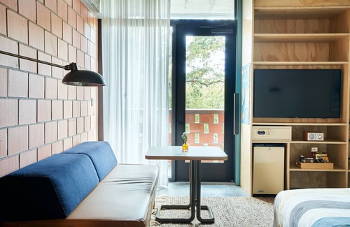 The Carpenter Hotel offers 93 air-conditioned accommodations with minibars and safes. Rooms open to furnished balconies. 53-inch flat-screen televisions come with cable channels. Bathrooms include bathtubs or showers, bathrobes, complimentary toiletries, and hair dryers.