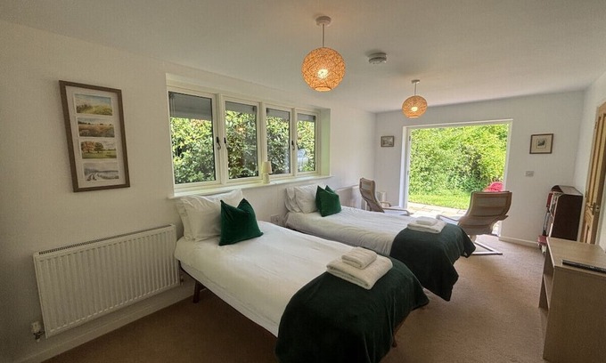 Put your feet up, and take a calming breath here surrounded by greenery and close to a deciduous ancient forest. Take a leisurely stroll to the monument, or along the Test Way, or try the food at The Plough Inn or a massage at Mosaique Beauty. com in Longparish.