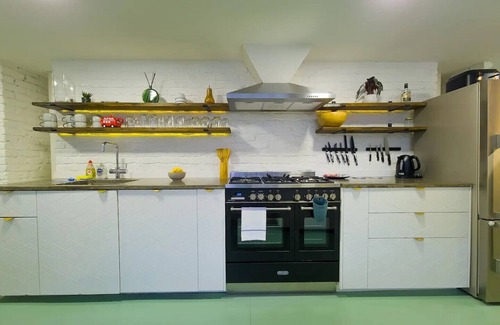 - Kitchen: Fully equipped with modern appliances, including an instant boiling water tap and bespoke concrete counters.