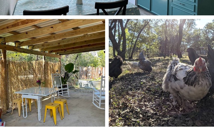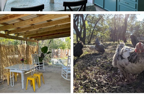 Our San Marcos mini-farm is a special place, a lovingly hand-built enclave of homes, agricultural space, fields and flowers. We're now sharing our 'chicken house' a nickname that has stuck because of the mysterious affinity our free range chickens have for gathering around it. Aside from a side gig as a chicken haven, the newly remodeled modern cottage features a fabulous claw-footed tub to enjoy on the private back porch.