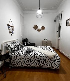 Food & DrinkBottle of water, Tea/Coffee maker, Chocolate/CookiesBathroomToilet, Shower, Bidet, Toilet paper, Bathtub, Guest bathroom, Bathtub or shower, Body soap, Hairdryer, Shared bathroom, Shared toilet, Towels, Additional bathroomMedia & TechnologyCable channels, Flat-screen TV, TVGeneralHardwood or parquet floors, Fire extinguisher, Iron, Heating, Fan, Trash cans, Key access, Smoke AlarmOutdoorsPatio, Terrace, Outdoor furniture, Balcony, Outdoor dining areaKitchenMicrowave, Kitchenware, Toaster, Cleaning products, Dining table, Refrigerator, Stovetop, Electric kettle, Coffee machine, Kitchen, Wine glasses, OvenLiving AreaDining area, Sitting area, DeskBedroomLinensAccessibilityUpper floors accessible by stairs onlyRoom AmenitiesNon-feather pillow, Clothes rack, Socket near the bed |