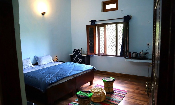 The Chimes House is a newly renovated homestay with 4 cozy bedrooms (attached washrooms, work desk, geyser, kettle, almirah), 2 with mini kitchens. Enjoy a common fully equipped kitchen, indoor lounge with Android TV, outdoor sit-outs, fire pit & barbeque. Flexible check-in/out, homely food on order, 24x7 power, RO water & fridge. Nearby treks, village tours, and friendly hosts make it a perfect peaceful escape with true home vibes.