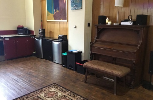 The Church House is fully equipped with all amenities: FREE INTERNET , satellite TV in 2 bedrooms and a 50 inch smart-TV in the living room, dishwasher, 2 small fridges, 1 large full size fridge in the basement, a small chest freezer, microwave oven, stove, toaster, electric water kettle, crock pot, standard coffee maker with permanent filter, 40- cup coffee urn, pots, pans, glasses, cutlery, etc.