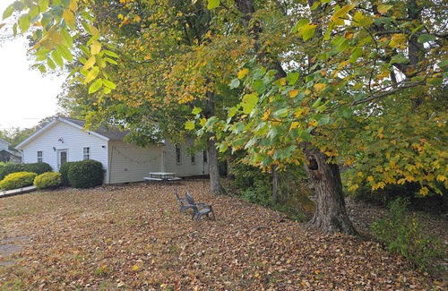 The Church House sits in a valley on a half acre lot with room to enjoy the outdoors. The south side of the building is a nice flat space and the north side is on the banks of the North Fork Little Cacapon River where the trees provide a canopy that wraps around the building.