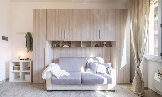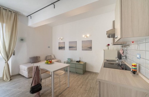 Bright and carefully furnished, the apartment has everything you could wish for: the bed, comfortable and cozy, can be folded up to gain extra space in the living area and make the most of your home evenings. The kitchenette is equipped with all the accessories you might need to prepare delicious meals: the area is also well supplied with shops and supermarkets where you can buy all the ingredients you will need. The private bathroom, with a very spacious shower and a washing machine at your disposal, will allow you to refresh even your travel wardrobe.