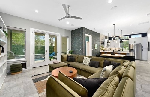 Located in East Austin. This home is fully furnished with lavish furnishings and perfectly set up to sleep 16 people comfortably.