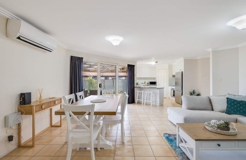 This inviting 4-bedroom, 2-bathroom home offers comfort and convenience with 2 spacious living areas, a fully-equipped kitchen, and a covered outdoor area. Enjoy the double lockup garage and modern amenities like high-speed Wi-Fi and a smart TV. Ideally located near Gabbinbar Homestead wedding venue and local shops and parks, it’s perfect for families or groups seeking a cozy retreat. Your ideal home away from home awaits!