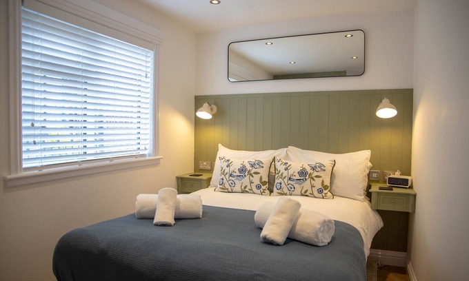 Comfortable Double Bed: Unwind in the cozy bedroom featuring a double bed, perfect for a restful night's sleep after a day of exploring the town and its surroundings.