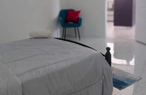 Two bedroom modern and stylish space for friends, family and even a couple who enjoy a spacious dwelling while spending quality time together. Uniquely minutes away from the city's most popular entertainment hub it's very quiet yet has the easiest access to all services, is guaranteed for your comfort and for the adventurous type a myriad of fun, spunky mini hubs are within walking distance.We make it easy for you to have a great stay.