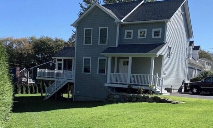 This is a new construction beach house (2021) in Bonnet Shore private community with walking distance to Kelly Beach. Sleeps 8 with a fully equipped kitchen, Weber gas grill on outside deck, screened in porch area. Outside shower, full size washer/dryer and all new appliances. AC home, enough room for 4 large vehicles to park off street. Private Kelly Beach is walking distance of 0.8 mi Narragansett Town Beach is about 4 mi. away, a 15 min. drive to Newport and a 30 min. drive to Watch Hill. Take a ferry from point Judith to Block Island and explore. Beach chairs, beach umbrellas are included and yard games. Great place to enjoy your vacation with family and friends.