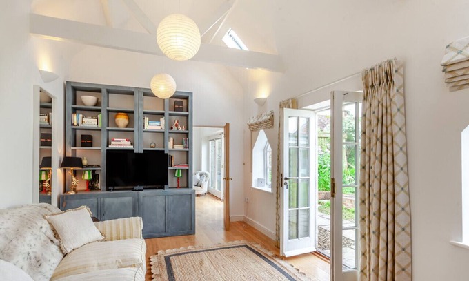 From the street take the private entrance door and a step up into this single storey property, which is attached to the owners home, yet with privacy assured. You will be met by a contemporary kitchen, newly fitted in 2024. This room sets the tone for the rest of the property as it has a high vaulted ceiling and plenty of natural light. An inner hallway passes the cosy single bedroom and the bathroom before you reach the lounge, with views over the garden. This room has a Smart TV so you can enjoy your favourite shows. Just next door is the king-size bedroom, an ideal spot in which to relax when the day is done.