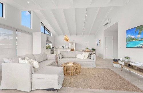With tasteful coastal styling, large and incredibly comfortable beds to sink into after a long day at the beach, The Cove 2 is a truly unique and welcome addition to Black Head's holiday accommodation. It is without question one of the most beautiful holiday homes available.