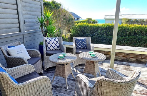 The Cove is a 4 bedroom, 3 bathroom Matarangi holiday home situated one house back from the beach, with a view! This well appointed holiday home offers privacy and comfort for up to 10 guests. This split level Matarangi holiday home includes light and spacious open plan living on the top level. The modern lounge flows out onto a large sunny deck for optimum indoor/outdoor living. The Cove is ideally set up for al fresco dining, BBQ's, and soaking up the sun! The master bedroom at this Matarangi accommodation is situated on the lower level, fitted with a king bed and a spacious ensuite. There is also a separate lounge area with a sofa bed and private deck off the master bedroom. The remaining three bedrooms are located on the top level, along with the family bathroom. Bedroom two is fitted with a queen bed and a spacious ensuite, bedroom 3 is fitted with two single king beds which can be converted into a queen bed, and bedroom 4 is fitted with a double bunk set. All beds in this property are less than 6 years old and are very comfortable. For days in the sun, the fully fenced and private yard offers a great place for the kids to play. or wander to the beach just 90 metres from your private back door access to the beach which is only a short 2 minute walk! The Cove at Matarangi Beach offers a superb, peaceful location to chill out and enjoy a summer beach holiday!