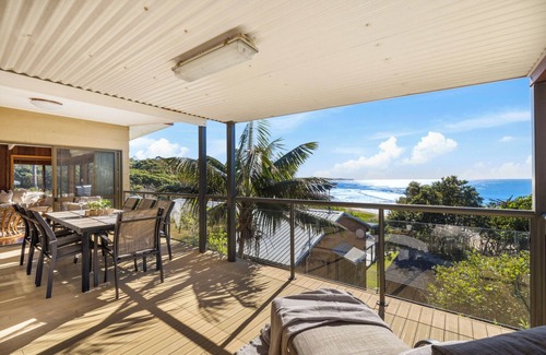 Welcome to The Cowrie House, a charming beachside retreat named after the treasured cowrie shell — a rare find that sometimes graces the shoreline just steps from your door. Perfectly positioned in the heart of Valla Beach, this dual-level holiday home offers a serene escape with unbeatable ocean views, spacious living areas, and easy beach access for those long, sun-soaked days.