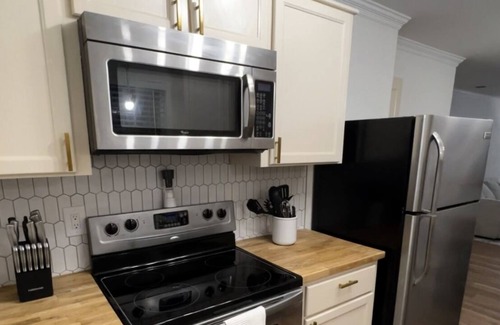 This home includes one king bed, one queen bed, full size kitchen, remodeled bathroom and covered parking. This is a newly renovated space designed to feel like home away from home.