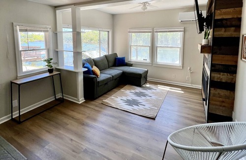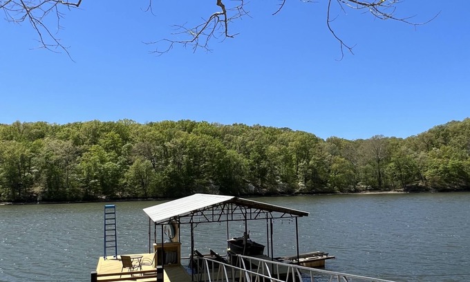 "The Creek Cove Cabin" is a 1950's lake front cabin that has been completely renovated yet still has that retro charm. The Cabin is located in Brush Creek cove at the 38mm. Conveniently located close to grocery, shopping, restaurants, Ozark's International Raceway, and The LOOP by black top on the LOTO Westside. By water it is close to Premier Advantage Marine, Bear Bottoms Resort, Captain Ron's, and Big Dick's Halfway Inn. There is a private dock equipped with paddle boards and a float pad to swim off of or tie your boat up to. There is gravel parking space for a couple of cars and or a trailer. There is a boat ramp less than mile away at King's Pointe Resort and RV Resort for a small fee.