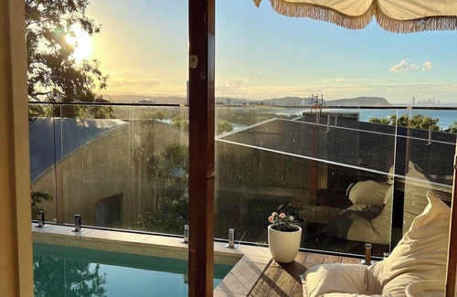 Escape to this secluded oasis atop Currumbin Hill, offering breathtaking ocean and hinterland views. This three-level freestanding house provides luxury and tranquility. Enjoy indulgent amenities including a traditional cedar sauna, ice bath, sensory deprivation float tank, spa, and pool, all surrounded by nature. Nearby, explore Currumbin Alley's golden sands and local attractions like the Wildlife Sanctuary. End your day on the rooftop, savoring panoramic vistas. Your ultimate retreat awaits.