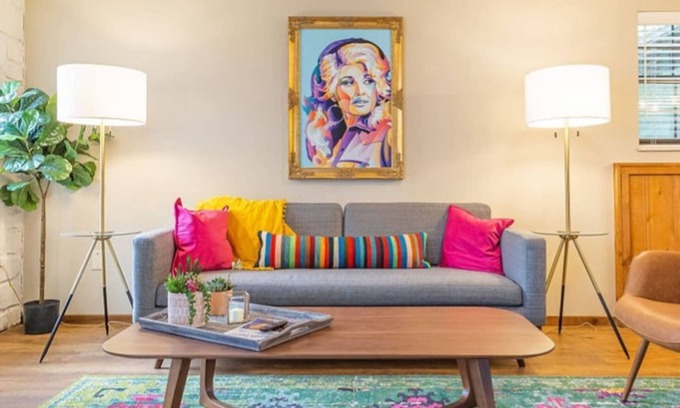 A colorful getaway honoring our local and global icon, Dolly! We offer a unique space with comfortable accommodation while having access to attractions in Gatlinburg and Pigeon Forge.