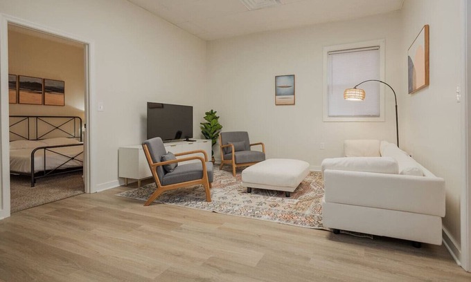 Welcome to the Dazzling Dwelling– your central retreat in WV! This unit offers off-street parking, central air, cable TV, and Wi-Fi. Located in the heart of Martinsburg, it's within easy walking distance to restaurants and shops. A short drive takes you to the Appalachian Trail, Harpers Ferry, Shepherdstown, and Antietam National Battlefield. Enjoy two bedrooms, a well-appointed bath, a fully equipped kitchen, and a cozy living room. Book now for a comfortable and convenient stay in Martinsburg!