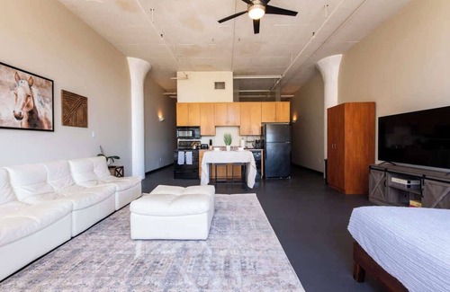 Welcome to The Real Bourbon Street Lofts (TRBS)—spacious short-term stays located in downtown Louisville’s historic Glassworks Building. Featuring 14-ft ceilings, 7-ft windows, and exposed beams, each loft combines modern comfort with vintage charm. TRBS flexible layouts can accommodate small families and large groups. Enjoy plenty of (optional) natural light, generous space for relaxation or work, and a prime location just steps from restaurants and the city’s best tourist attractions.