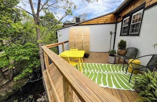 Welcome to the Downtown Flat at Creekside, brought to you by Camp Potomac Peak! Located in the heart of downtown Berkeley Springs, take a walk to the park, grab some food--or a beer at the local brewery, and then relax back at your upstairs oasis--complete with cedar barrel sauna, and two outdoor decks to take it all in.