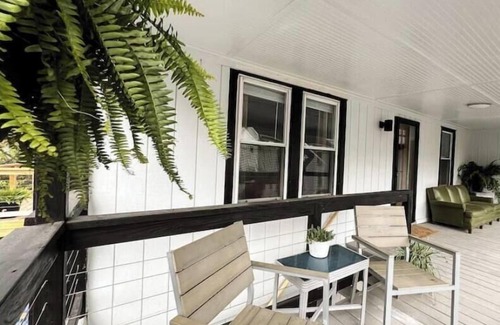 Walk up a set of stairs on to the covered front porch, and you'll find this spacious apartment has everything you'll need for a perfect little getaway...