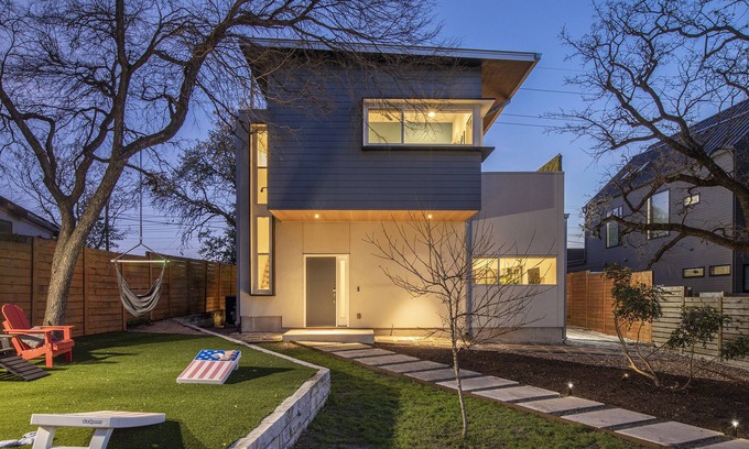 You want your next vacation home to have wow factor, and the Eastsider has plenty to offer. This beautiful modern home with contemporary interior design and seamless indoor-outdoor living is the perfect spot for your Austin, TX checklist. If that list includes staying in a private sanctuary tucked right in the middle of Austin's hottest attractions, The Eastsider can check it off. The State Capitol, Waterloo Park and amphitheater, Moody Center and basketball arena, UT Campus and football stadium, 6th Street District and Rainey Street district are all just a 10-20 minute walk away. And if that all seems too good to be true, you are also a 15-minute drive away from the airport.