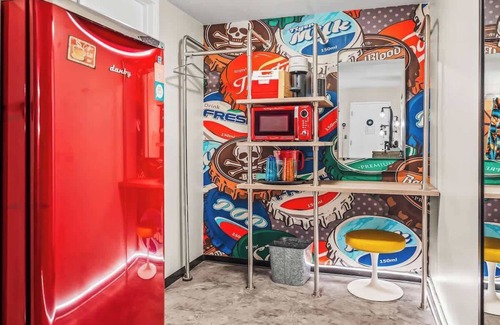 Welcome to our COMBO Retro Bunk Bed Room and King Bed Room, located right next to one another. The Retro bunk Beds Room comes with double-sized murphy bed and bunk beds, where retro design meets comfort for a fun-filled stay! The King Bed Room comes with a king bed. The unit is perfect for families, friends, or anyone young at heart, this vibrant room captures the essence of cool retro vibes while providing all the amenities you need.