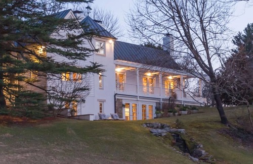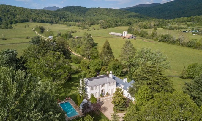 Escape to our stunning and historic 1749 Virginia manor with an extraordinary French addition. Set in the serene foothills of the Shenandoah Mountains on a 400 acre working farm, our luxurious five-bedroom accommodations promise comfort and elegance. Relax in the library, enjoy meals in the grand dining room, unwind by the pool, or mix up a drink in the bar. Explore 10 acres of private, fenced land with a tranquil 1 acre pond. Your magical getaway awaits!