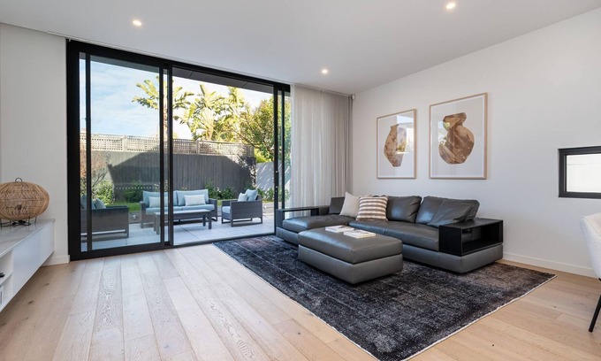Welcome to The Executive – a striking, architecturally designed townhouse offering a sophisticated stay in the heart of Caulfield South. This beautifully crafted home features four spacious bedrooms, two luxurious bathrooms, and a convenient downstairs powder room. The open-plan living area is filled with natural light, flowing seamlessly into a sleek kitchen and dining space, perfect for entertaining or unwinding. With reverse cycle heating and cooling throughout, a secure backyard with gas BBQ, and off-street parking for up to three vehicles – including a double garage with EV charging capability (additional charges apply)