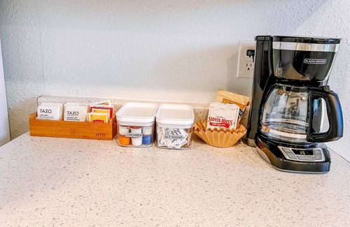 Escape to this outdoorsy 2 bedroom 1 bathroom unit decorated with a cool blue color scheme and nature inspired decor. This unit features 2 queen size beds, a full size kitchen, patio and firepit area and is pet friendly. Traveling with other friends, family, or co-workers that want to be nearby but with their own space? Check to see if the next door unit called "The Garden" is available! We also have 2 more similar units in the same neighborhood called "The Retro" and "The Wildflower".
