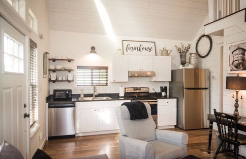 Inside, you'll find a fully-equipped kitchen ready for your home-cooked meals, whether it's a hearty breakfast before exploring the local sights or a cozy dinner to end the day. The Farm House features tasteful decor that complements the serene, natural setting, creating a warm and inviting atmosphere.